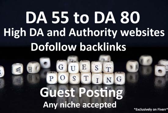 Here, I provide guest post on high-quality websites with High Domain Authority, Traffic and Trust Flow.DA 55 to DA 80 high quality blogs